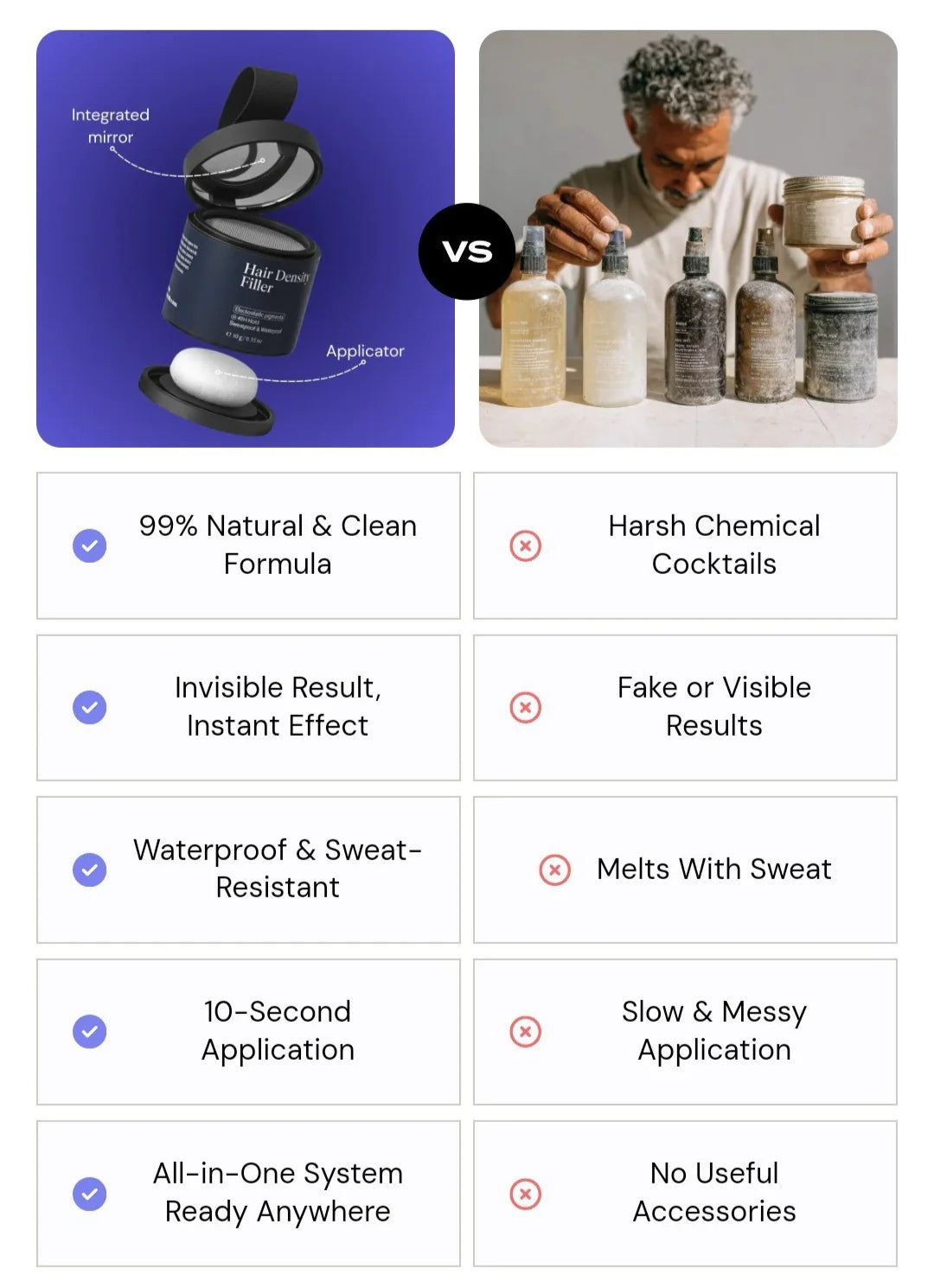Why spray-on loose fibers fail… and how Hair Density Filler revolutionizes hair concealment with Grip-Lock 48™ Technology.